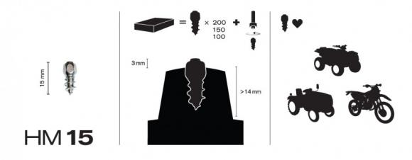 Renkaan suositeltava urasyvyys HM15-nastaa käytettäessä on vähintään 14 mm, ja sopiva nastan ulkonema on 3 mm