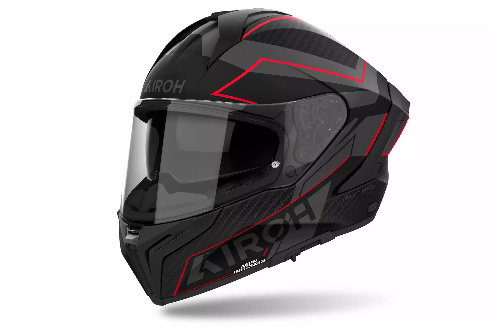 Visiiri: ekstra laaja näkökenttä, ATVR (Airoh Tool-less Visor Removal) visiirin irrotus ilman työkaluja, A3S (Airoh Automatic Antifog System) huurtumisen esto, lukitussysteemi, naarmuuntumaton ja UV-suojattu
