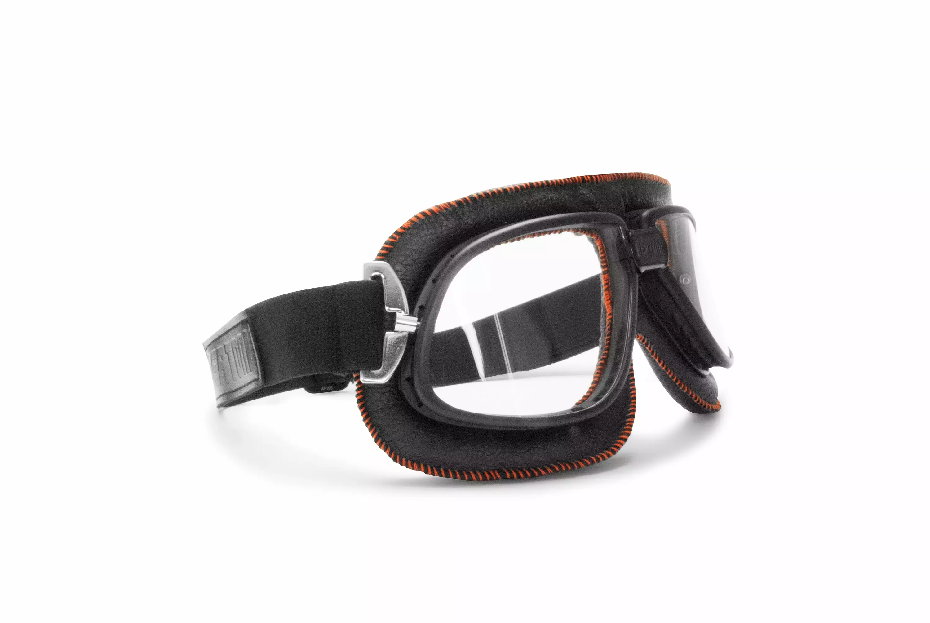 Vintage moottoripyöräilysuojalasit mustaa nahkaa, oranssi tikkaus ja savulinssit