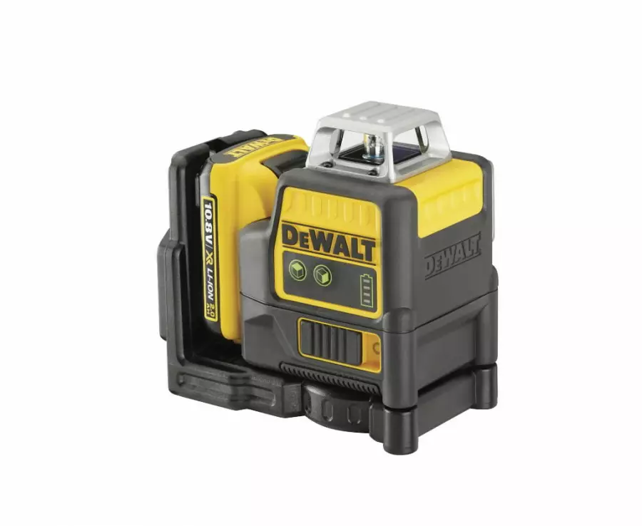 The Dewalt DCE0811D1G is a 2 way self levelling 360° cross line laser with a ultra bright green laser. Green lasers are x4 time more visible to the human eye than red lasers of the same output power. It also has the capability to project bright horizontal and vertical lines at 360°. Works with the Dewalt 10.8 volt battery platform.