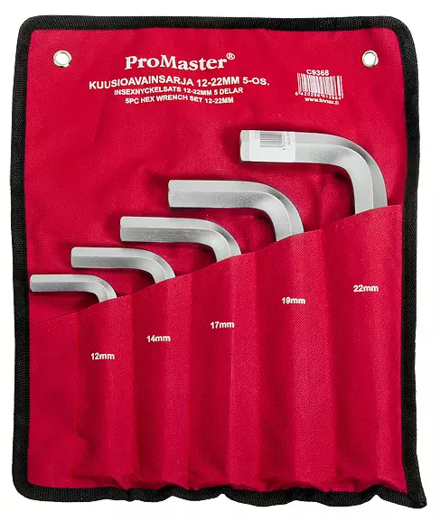 ProMaster - Materiaali terästä - Sarja sisältää koot 12, 14, 17, 19, ja 22 mm - Kätevä käärittävä/ripustettava säilytyspussi - Takuu 1 vuosi