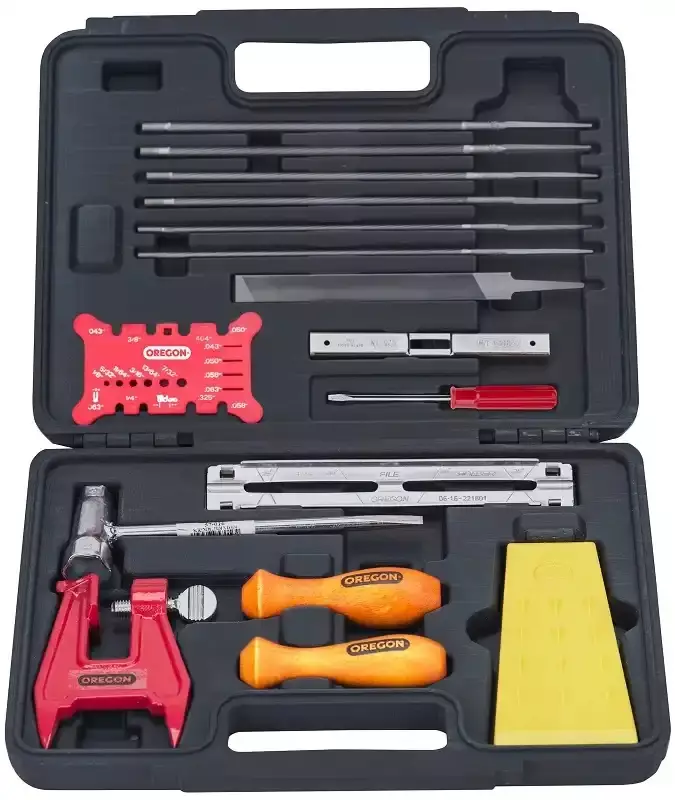 Kaikki nämä työkalut tulevat kätevässä muovisalkussa, joka pitää ne järjestyksessä ja suojassa. Oregonin viilaussarja on täydellinen valinta, joka varmistaa moottorisahasi optimaalisen suorituskyvyn ja pitkäkestoisen terävyyden.