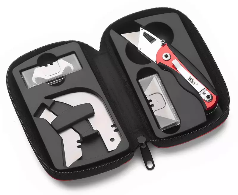 Wiss MADE IN THE USA - Setti sisältää taitettavan veitsen, nailonkotelon ja neljä erilaista leikkuuterää - Ruosteenkestävä teräsrakenne - Puolelta toiselle vaihdettava vyökiinnitys ja... Lue lisää