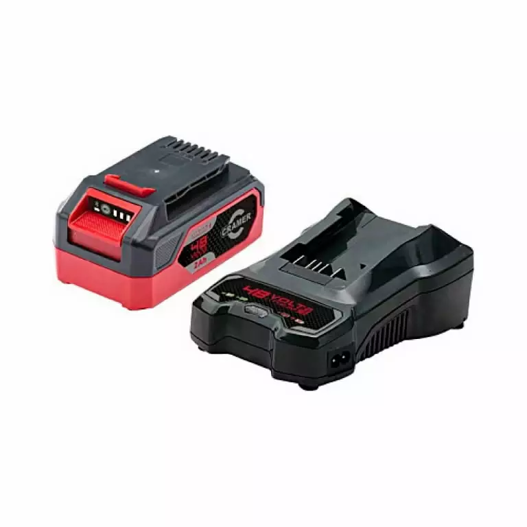 The Cramer 48SK96 starter kit includes a 48V 2Ah battery and 4A single slot charger.
