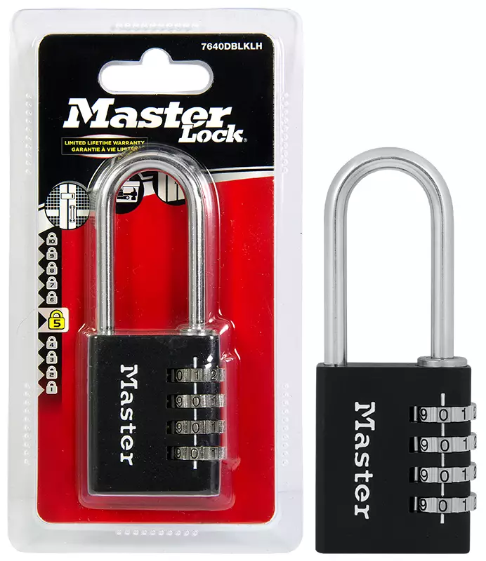 Masterlock - Alumiinirunkoinen maalattu lukko - Suojaluokka 5 - 4 numeroinen koodi - Mitat: - Runkoleveys 40mm - Kaaren paksuus 6mm - Kaaren korkeus 51mm - Kaariväli 22mm - Ip-ripustinpakkaus -... Lue lisää